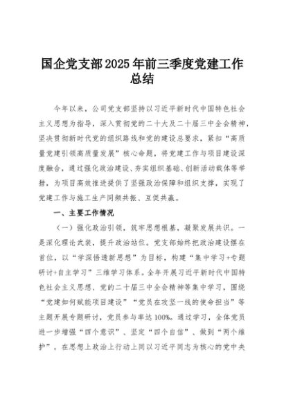 / 【七哥公文】2025年:国企党支部2025年前三季度党建工作总结+更多免费公文+VX:QiGeGongWen2024
