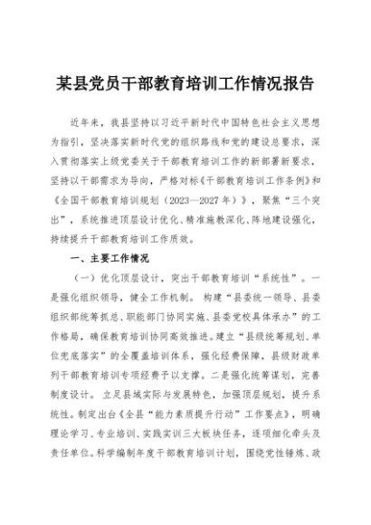 / 【七哥公文】2025年:某县党员干部教育培训工作情况报告+更多免费公文+VX:QiGeGongWen2024