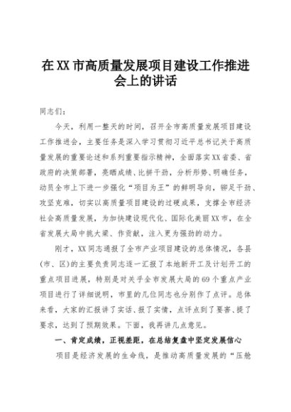 / 【七哥公文】2025年:在XX市高质量发展项目建设工作推进会上的讲话+更多免费公文+VX:QiGeGongWen2024