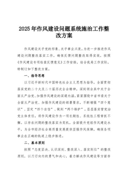 / 【七哥公文】2025年:2025年作风建设问题系统施治工作整改方案+更多免费公文+VX:QiGeGongWen2024