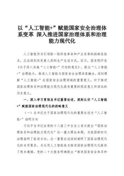 【七哥公文】2025年:以“人工智能+”赋能国家安全治理体系变革 深入推进国家治理体系和治理能力现代化+更多免费公文+VX:QiGeGongWen2024