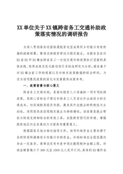【七哥公文】2025年:XX单位关于XX镇跨省务工交通补助政策落实情况的调研报告+更多免费公文+VX:QiGeGongWen2024