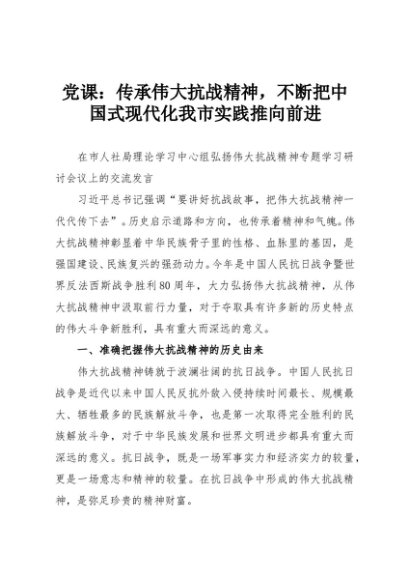 【七哥公文】2025年:党课:传承伟大抗战精神,不断把中国式现代化我市实践推向前进+更多免费公文+VX:QiGeGongWen2024