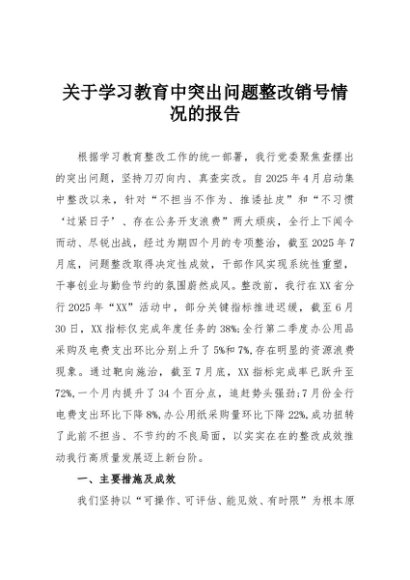 / 【七哥公文】2025年:关于学习教育中突出问题整改销号情况的报告+更多免费公文+VX:QiGeGongWen2024