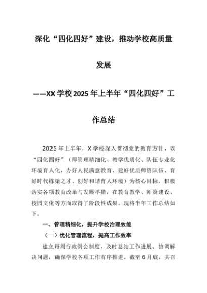 【七哥公文】2025年:XX学校2025年上半年“四化四好”工作总结:深化“四化四好”建设,推动学校高质量发展+更多免费公文+VX:QiGeGongWen2024