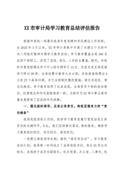/ 【七哥公文】2025年:XX市审计局学习教育总结评估报告+更多免费公文+VX:QiGeGongWen2024