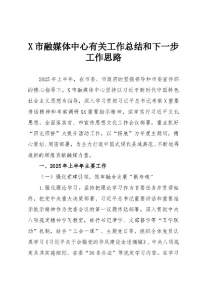 / 【七哥公文】2025年:X市融媒体中心有关工作总结和下一步工作思路+更多免费公文+VX:QiGeGongWen2024