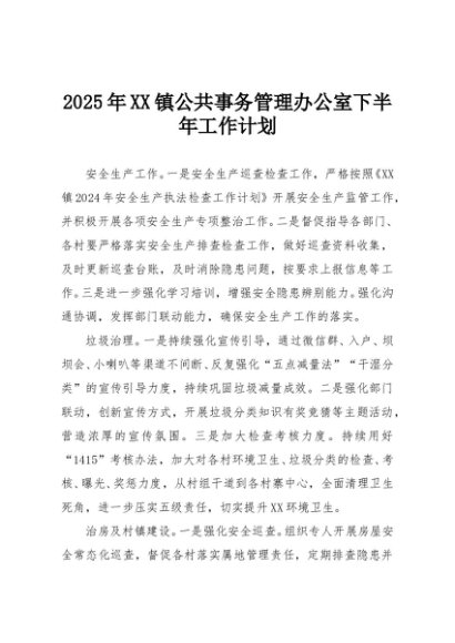 / 【七哥公文】2025年:2025年XX镇公共事务管理办公室下半年工作计划+更多免费公文+VX:QiGeGongWen2024