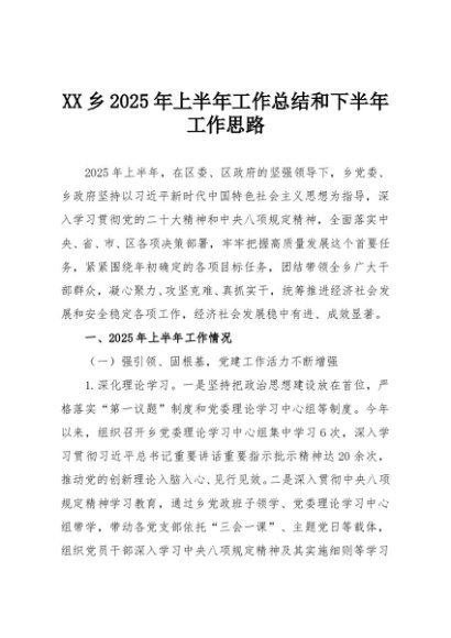 / 【七哥公文】2025年:XX乡2025年上半年工作总结和下半年工作思路+更多免费公文+VX:QiGeGongWen2024