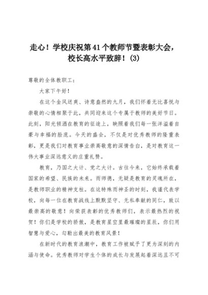 【七哥公文】2025年:走心!学校庆祝第41个教师节暨表彰大会,校长高水平致辞!(3)+更多免费公文+VX:QiGeGongWen2024