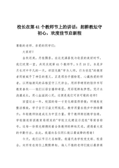 【七哥公文】2025年:校长在第41个教师节上的讲话:躬耕教坛守初心,欢度佳节启新程+更多免费公文+VX:QiGeGongWen2024
