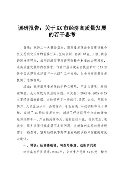 【七哥公文】2025年:调研报告:关于XX市经济高质量发展的若干思考+更多免费公文+VX:QiGeGongWen2024