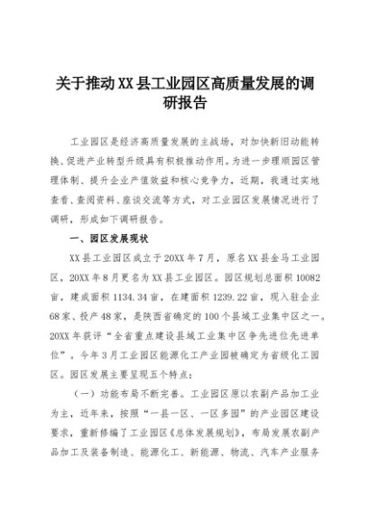 【七哥公文】2025年:关于推动XX县工业园区高质量发展的调研报告+更多免费公文+VX:QiGeGongWen2024