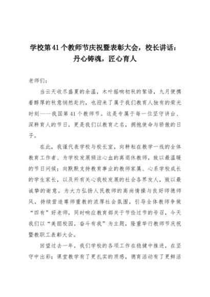【七哥公文】2025年:学校第41个教师节庆祝暨表彰大会,校长讲:丹心铸魂,匠心育人+更多免费公文+VX:QiGeGongWen2024