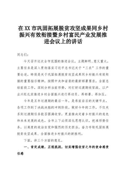 【七哥公文】2025年:在XX市巩固拓展脱贫攻坚成果同乡村振兴有效衔接暨乡村富民产业发展推进会议上的讲话+更多免费公文+VX:QiGeGongWen2024