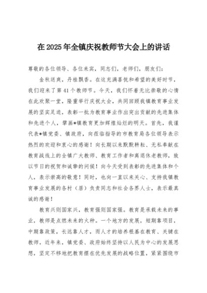 / 【七哥公文】2025年:在2025年全镇庆祝教师节大会上的讲话+更多免费公文+VX:QiGeGongWen2024
