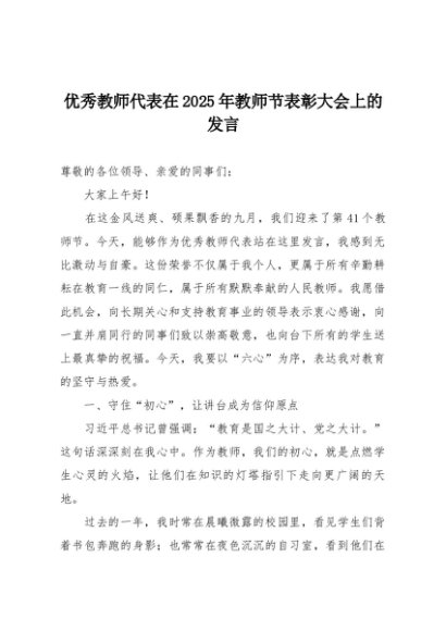 【七哥公文】2025年:优秀教师代表在2025年教师节表彰大会上的发言+更多免费公文+VX:QiGeGongWen2024