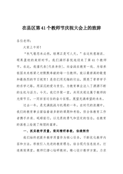 / 【七哥公文】2025年:在县区第41个教师节庆祝大会上的致辞+更多免费公文+VX:QiGeGongWen2024