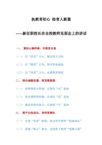 【七哥公文】2025年:新任职校长在全校教师见面会上的讲话:执教育初心 绘育人新篇+更多免费公文+VX:QiGeGongWen2024