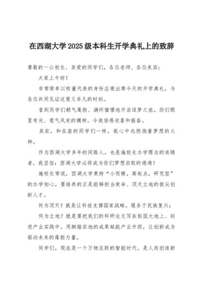 / 【七哥公文】2025年:在西湖大学2025级本科生开学典礼上的致辞+更多免费公文+VX:QiGeGongWen2024