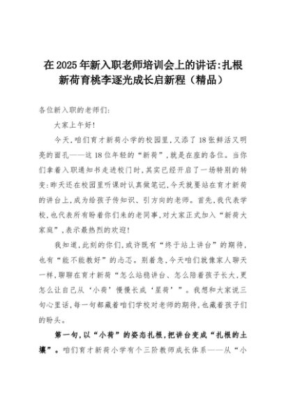 【七哥公文】2025年:在2025年新入职老师培训会上的讲话:扎根新荷育桃李逐光成长启新程(精品)+更多免费公文+VX:QiGeGongWen2024