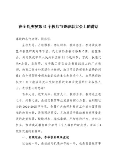 / 【七哥公文】2025年:在全县庆祝第41个教师节暨表彰大会上的讲话+更多免费公文+VX:QiGeGongWen2024