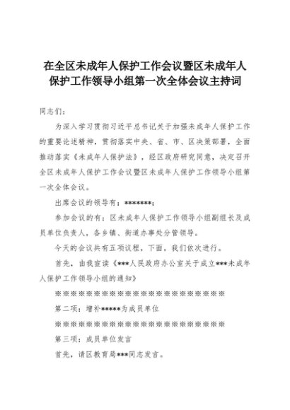 【七哥公文】2025年:在全区未成年人保护工作会议暨区未成年人保护工作领导小组第一次全体会议主持词+更多免费公文+VX:QiGeGongWen2024