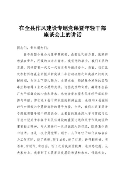 / 【七哥公文】2025年:在全县作风建设专题党课暨年轻干部座谈会上的讲话+更多免费公文+VX:QiGeGongWen2024
