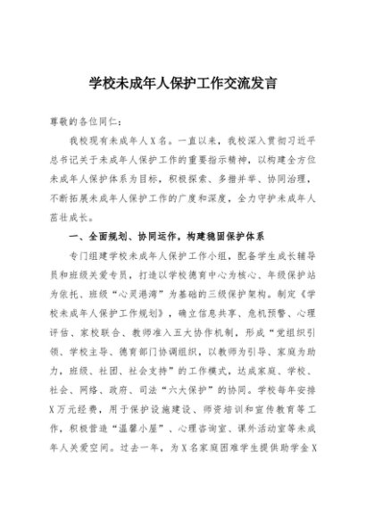 / 【七哥公文】2025年:学校未成年人保护工作交流发言+更多免费公文+VX:QiGeGongWen2024