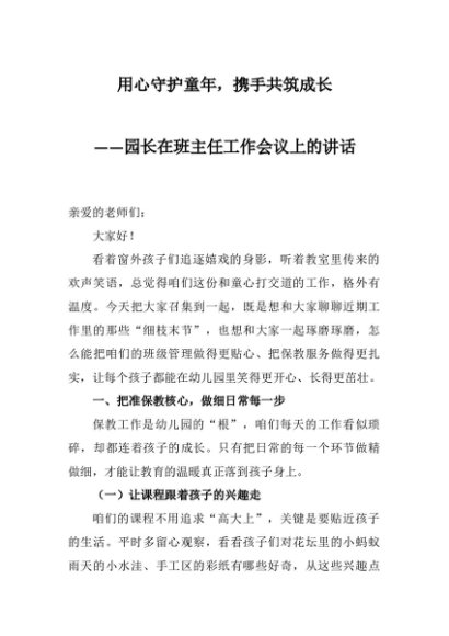 【七哥公文】2025年:园长在班主任工作会议上的讲话:用心守护童年,携手共筑成长+更多免费公文+VX:QiGeGongWen2024