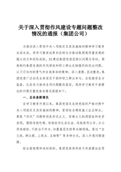 【七哥公文】2025年:关于深入贯彻作风建设专题问题整改情况的通报(集团公司)+更多免费公文+VX:QiGeGongWen2024