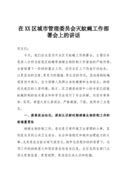 / 【七哥公文】2025年:在XX区城市管理委员会灭蚊蝇工作部署会上的讲话+更多免费公文+VX:QiGeGongWen2024