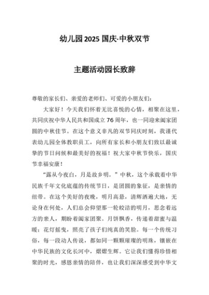 / 【七哥公文】2025年:幼儿园2025国庆·中秋双节主题活动园长致辞+更多免费公文+VX:QiGeGongWen2024