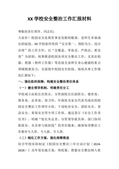 / 【七哥公文】2025年:XX学校安全整治工作汇报材料+更多免费公文+VX:QiGeGongWen2024