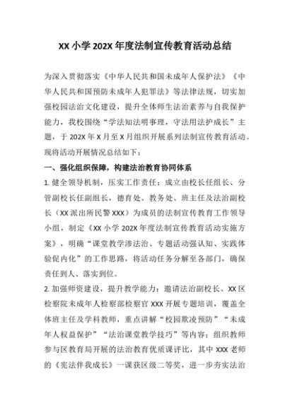 / 【七哥公文】2025年:XX小学202X年度法制宣传教育活动总结+更多免费公文+VX:QiGeGongWen2024