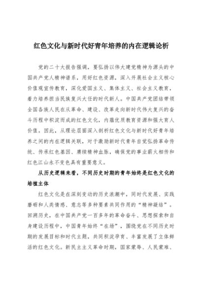 / 【七哥公文】2025年:红色文化与新时代好青年培养的内在逻辑论析+更多免费公文+VX:QiGeGongWen2024