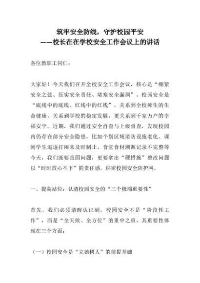 【七哥公文】2025年:筑牢安全防线,守护校园平安——校长在在学校安全工作会议上的讲话+更多免费公文+VX:QiGeGongWen2024