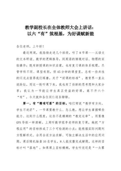 【七哥公文】2025年:教学副校长在全体教师大会上讲话:以六 “有”筑根基,为好课赋新能+更多免费公文+VX:QiGeGongWen2024