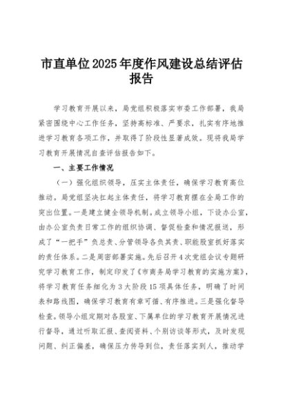/ 【七哥公文】2025年:市直单位2025年度作风建设总结评估报告+更多免费公文+VX:QiGeGongWen2024