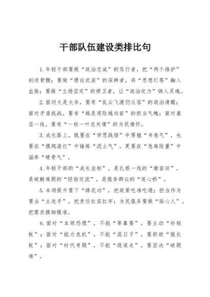 【七哥公文】2025年:干部队伍建设类排比句+更多免费公文+VX:QiGeGongWen2024