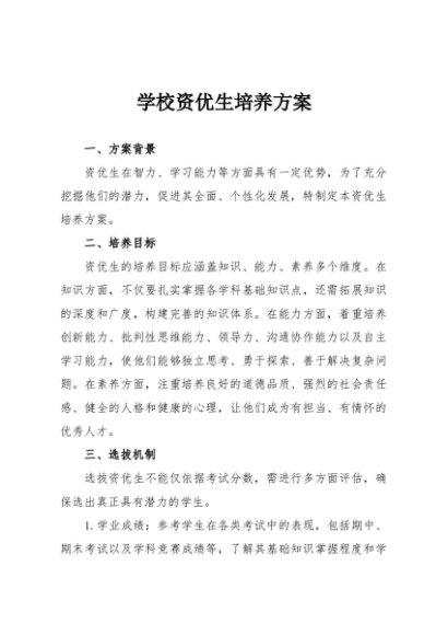 / 【七哥公文】2025年:学校资优生培养方案+更多免费公文+VX:QiGeGongWen2024