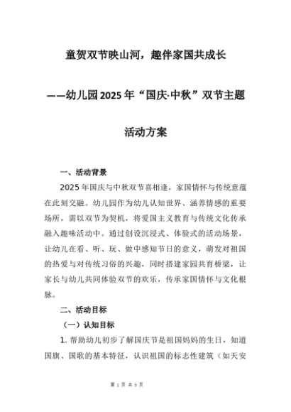 【七哥公文】2025年:幼儿园2025年“国庆·中秋”双节主题活动方案:童贺双节映山河 趣伴家国共成长+更多免费公文+VX:QiGeGongWen2024