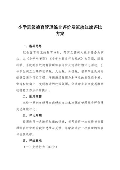 【七哥公文】2025年:小学班级德育管理综合评价及流动红旗评比方案+更多免费公文+VX:QiGeGongWen2024