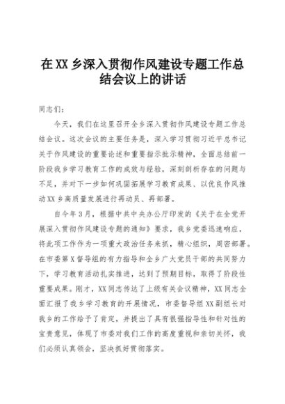 / 【七哥公文】2025年:在XX乡深入贯彻作风建设专题工作总结会议上的讲话+更多免费公文+VX:QiGeGongWen2024