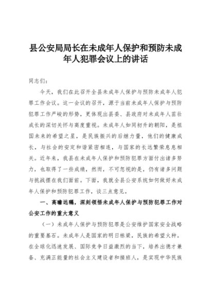【七哥公文】2025年:县公安局局长在未成年人保护和预防未成年人犯罪会议上的讲话+更多免费公文+VX:QiGeGongWen2024
