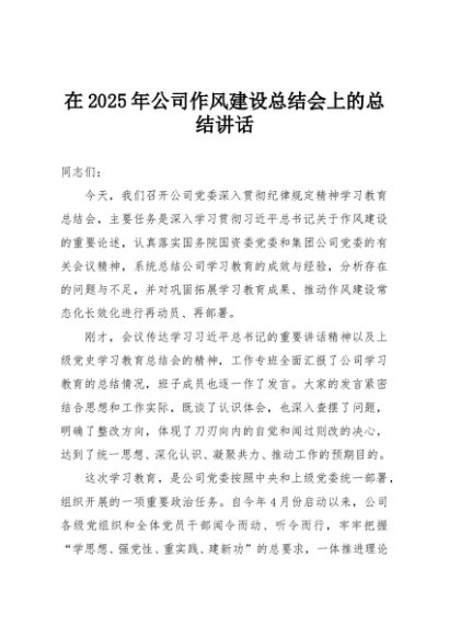 / 【七哥公文】2025年:在2025年公司作风建设总结会上的总结讲话+更多免费公文+VX:QiGeGongWen2024