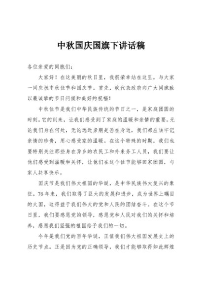 / 【七哥公文】2025年:中秋国庆国旗下讲话稿+更多免费公文+VX:QiGeGongWen2024