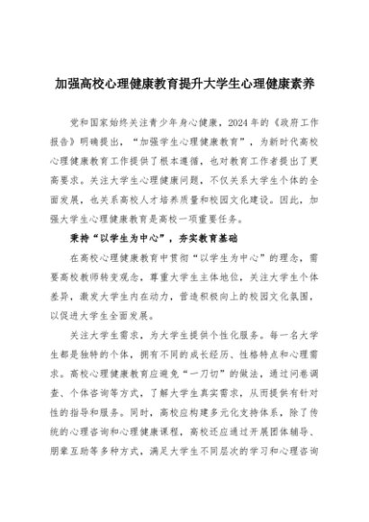【七哥公文】2025年:加强高校心理健康教育提升大学生心理健康素养+更多免费公文+VX:QiGeGongWen2024