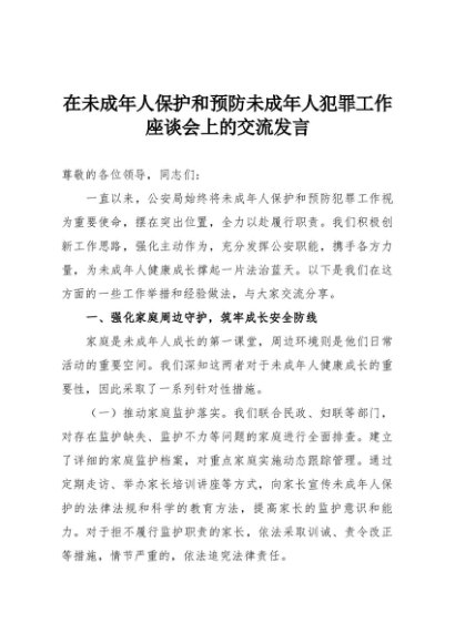 【七哥公文】2025年:在未成年人保护和预防未成年人犯罪工作座谈会上的交流发言+更多免费公文+VX:QiGeGongWen2024