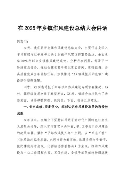 / 【七哥公文】2025年:在2025年乡镇作风建设总结大会讲话+更多免费公文+VX:QiGeGongWen2024